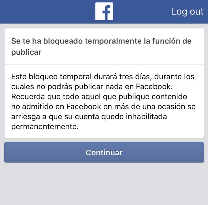 Facebook acaba de bloquearme la cuenta por 3 días. La censura no exis